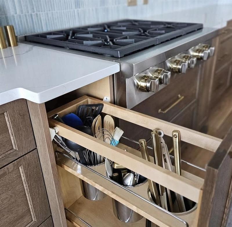 A kitchen feels more custom when the daily function is built in quietly. That can mean drawers planned around how a homeowner actually cooks. It can mean a pantry wall that keeps bulk storage out of sight. It can mean integrated panels, cleaner appliance placement, or cabinetry that gives everyday objects a place to disappear. The room does not need to feel minimal. It just needs to feel supported. That same thinking carries into the finishing details. Countertop edge profiles, end panels, hardware scale, cabinet sheen, and the way materials meet at corners all affect the final impression. These are small decisions, but they often do the work of making the kitchen feel complete. A kitchen feels more luxurious when it hides effort well. The storage works without calling attention to itself. The details feel precise without feeling fussy. That is usually what homeowners are noticing when a space feels custom. Not one loud feature, but a series of thoughtful decisions that make the room feel calm, crafted, and finished.